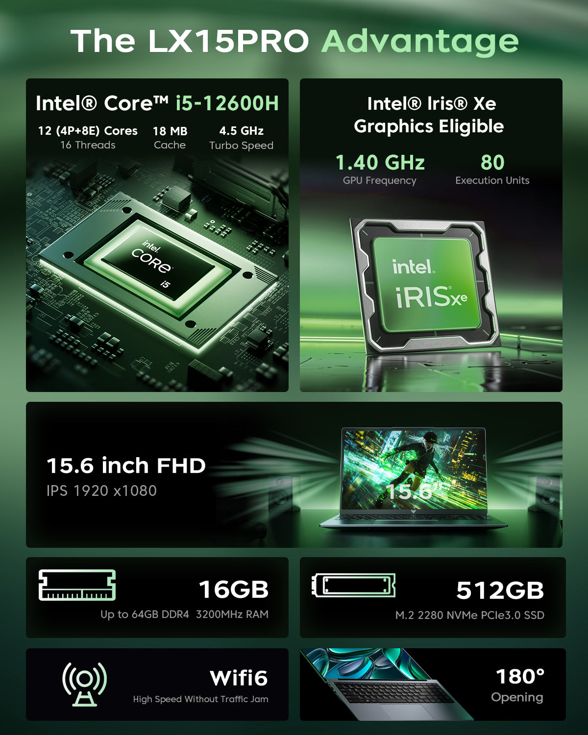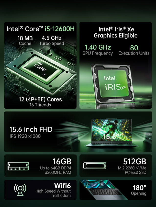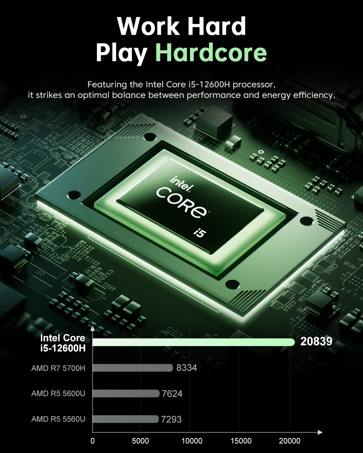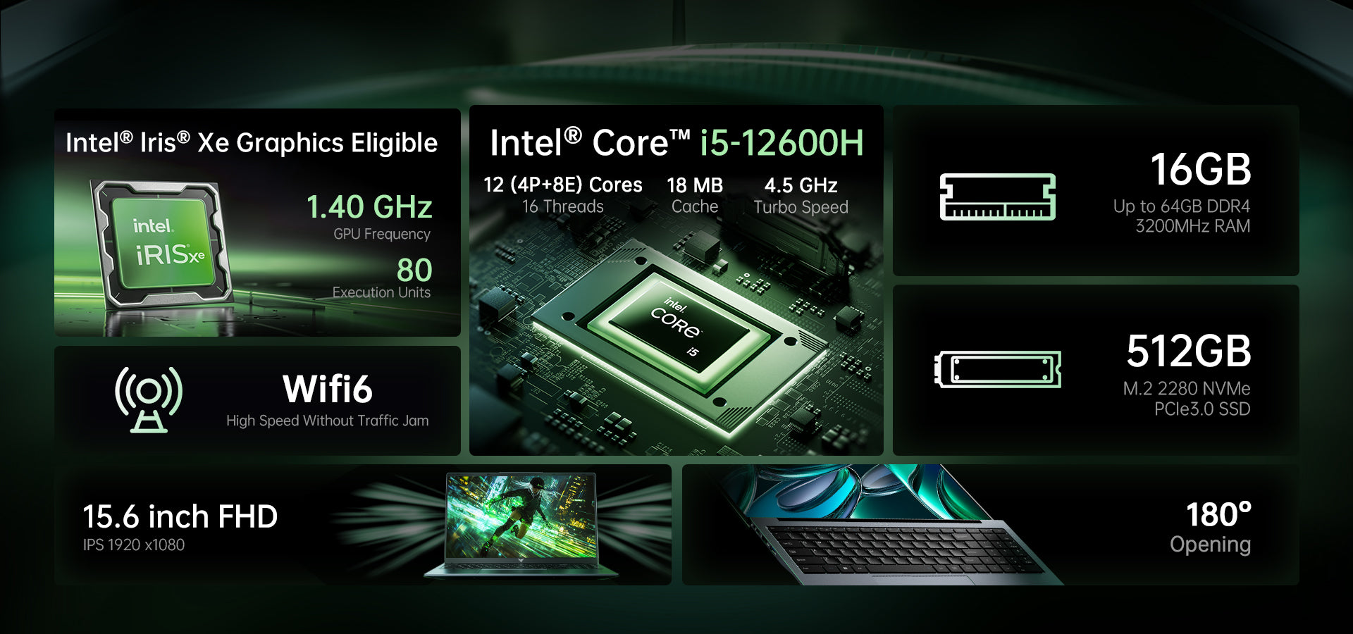 Intel® Core" i5-12600H Processor, 12 Cores/16 Threads