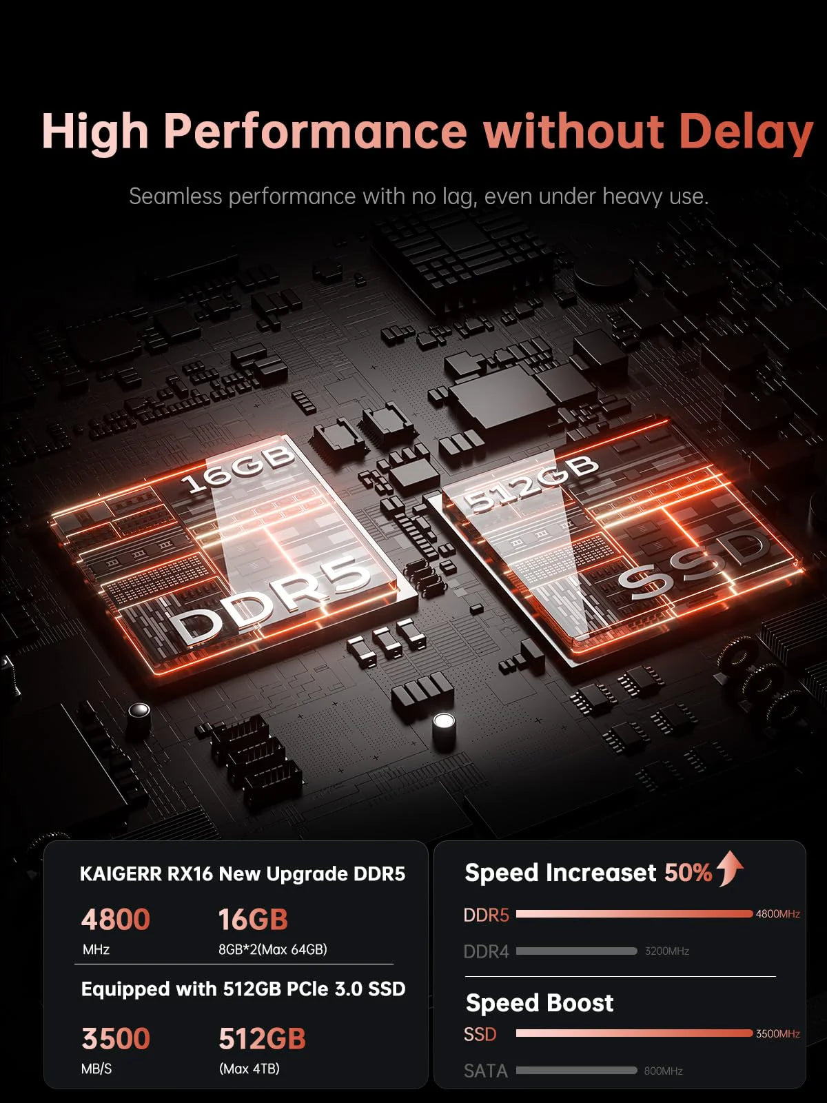 (DDR5 SO-DIMM Slots×2, up to 64GB, maximum supported memory frequency DDR5 5600MHz)